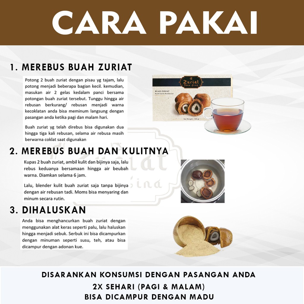CARA MAKAN BUAH ZURIAT. Untuk hasil yang maksimal dapat diminum secara rutin dua kali sehari. Beberapa rakan arab memberitahu caranya dengan menggunakan sudu di ketuk-ketuk sekitar buah zuriat tak perlu di belah dan kita ibaratkan seperti kita sagatkikis buah ini menjadi serbuk dan di makan begitu sahaja ataupun di campur.